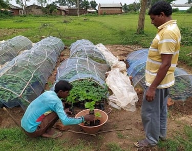 In response to climate variability and the need for sustainable farming practices, we have focused on forming seed banks that prioritize biodiversity. By preserving a wide variety of seeds, including indigenous "Desi" varieties, we aim to enhance the resilience of local ecosystems and farming communities, particularly in the Sabar villages. These indigenous seeds are more resilient to local environmental stresses like droughts, floods, and changing temperatures, making them vital for long-term climate change adaptation.