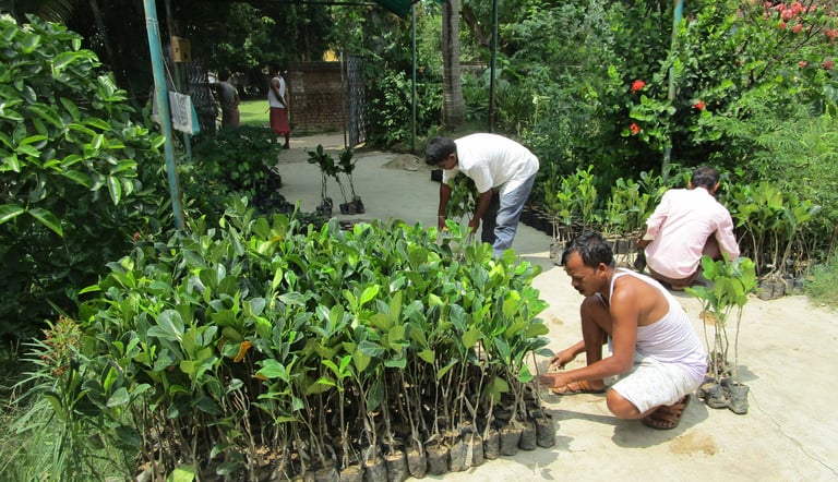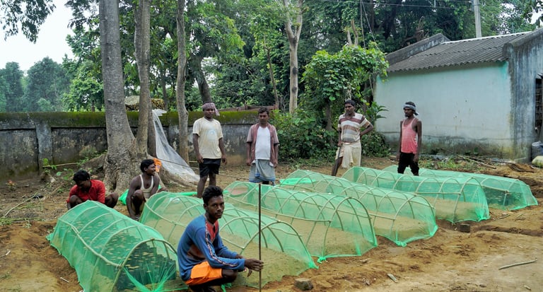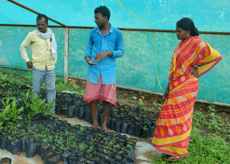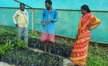 PBKSKS establishes wild food nurseries in locations such as Jara village in Bandwan Block, where indigenous food crops are grown. These nurseries serve as a source of native seeds and saplings, supporting the conservation and promotion of local biodiversity. Beside these many green houses and low-cost nurseries are seasonally constructed to supply saplings in the Sabar villages.