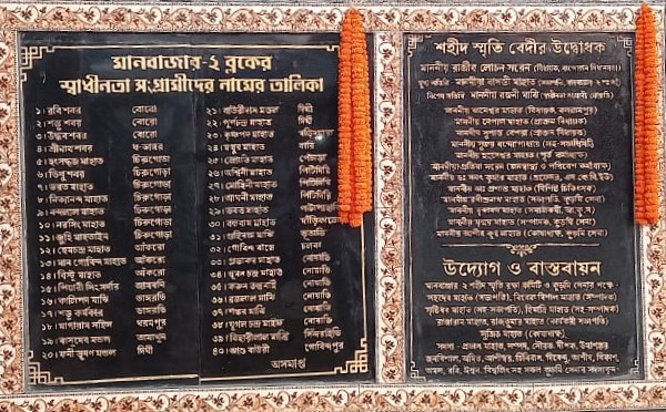 A major milestone of this effort was achieved in Manbazar II Block, where the block administration officially recognized the contribution of Sabar freedom fighters. A statue and a commemorative board were installed, listing the names of freedom fighters of Manbazar II block. Notably, the first five names- 1. Rabi Sabar(Boro) 2. Shambhu Sabar (Boro) 3. Uddob Sabar (Boro) 4. Shrinath Sabar (Dhadangor) 5. Bhikhu Sabar (Chirugora) on this board belong to members of the Sabar community, clearly affirming their role in the freedom movement. The government officially accepted that five Sabar individuals from Manbazar II Block participated in India’s freedom struggle, marking a historic moment of recognition. This achievement stands as a significant success of PBKSKS in mainstreaming the Sabar community and restoring their rightful place in history. The recognition of Sabar freedom fighters is historical justice within the community.